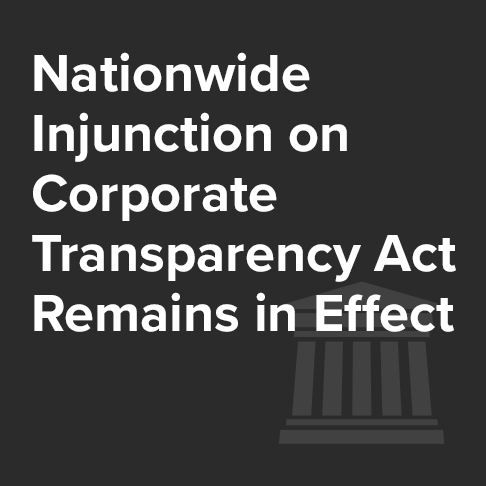 Nationwide Injunction on Corporate Transparency Act Mandatory Filing of Beneficial Ownership Information Reports Requirement Remains in Effect